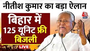 बिहार के लोगों को 125 यूनिट बिजली मुफ्त में मिलेगी। साथ ही अगले तीन वर्षों में घरेलू उपभोक्ताओं को सौर ऊर्जा का भी लाभ मिलेगा। मुख्यमंत्री नीतीश कुमार ने गुरुवार को X पर इसका ऐलान किया।