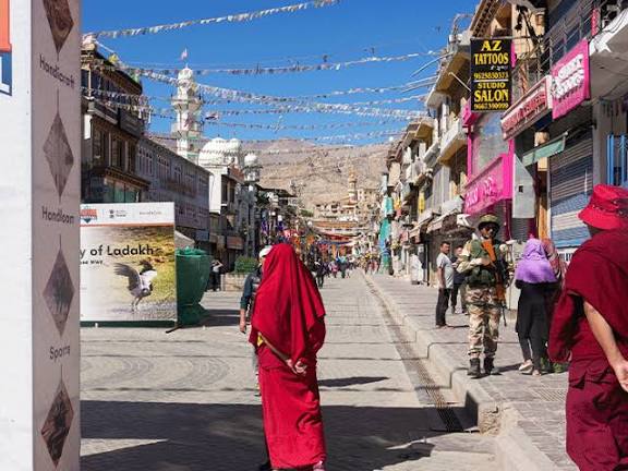 बौद्ध भिक्षुओं का शांत शहर लेह इस बार अजीब सा सन्नाटा महसूस कर रहा है। बाजार बंद। सड़क किनारे खाली खड़ीं टैक्सियां। सूनी गलियां और हर 20 मीटर पर खड़े 5 से 7 सुरक्षा जवान।