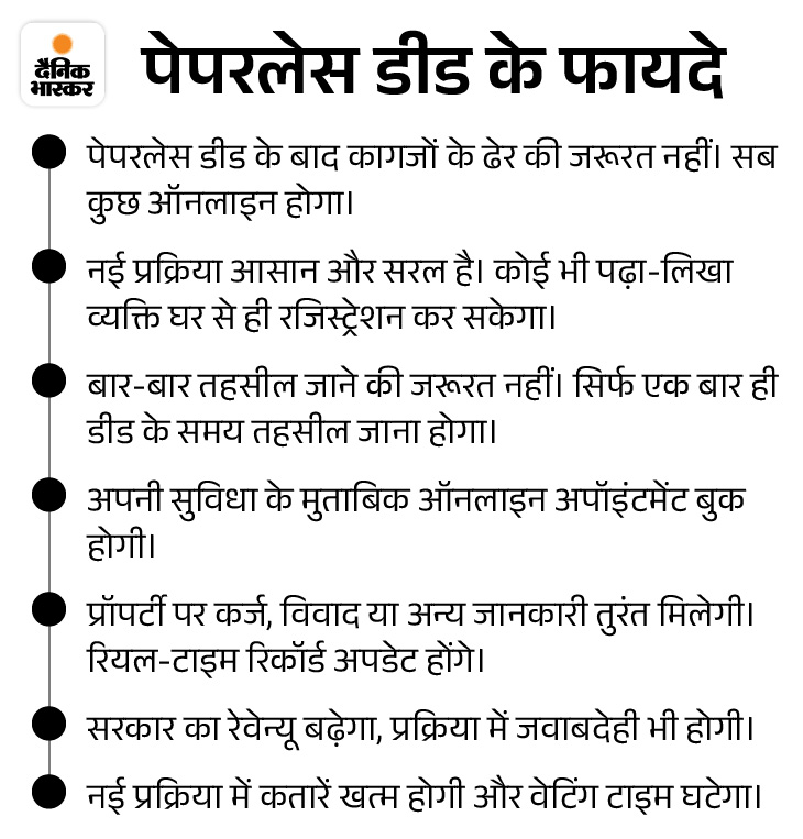 - फिर चेकिंग के बाद होती थी डीड : इस प्रक्रिया के बाद स्टाम्प पर डीड लिखने के बाद क्लर्क और तहसीलदार डॉक्यूमेंट की जांच करते थे। कोई कमी नहीं मिलने के बाद अपॉइंटमेंट पर खरीदार और विक्रेता को फोटो और बायोमेट्रिक के लिए बुलाकर डीड बनती थी। अगर खरीदार और विक्रेता अपॉइंटमेंट पर नहीं पहुंचते थे तो उनको दोबारा अपॉइंटमेंट लेनी पड़ती थी, जिसमें काफी समय बर्बाद होता था।
