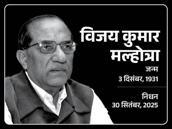 भाजपा के सीनियर नेता विजय कुमार मल्होत्रा का मंगलवार सुबह 93 साल की उम्र में निधन हो गया। वे पिछले कुछ दिनों से दिल्ली AIIMS में भर्ती थे। AIIMS ने आज सुबह उनकी मौत की जानकारी दी
