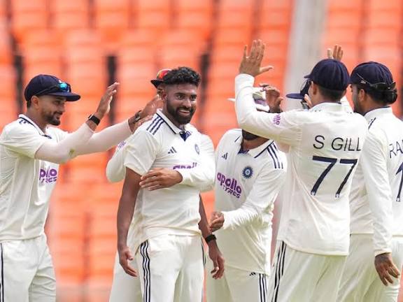 मोहम्मद सिराज ने 4 विकेट झटके, जबकि जसप्रीत बुमराह को 3 विकेट मिले। बुमराह घरेलू मैदानों पर सबसे तेज 50 विकेट लेने वाले भारतीय तेज गेंदबाज