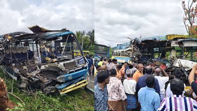 तमिलनाडु में 2 बसों की आमने-सामने टक्कर, 6 की मौत:30 यात्री घायल; पुलिस बोली- ड्राइवर की गलती से हादसा, ओवरस्पीड में चला रहा था
