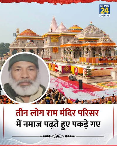 अयोध्या के राम मंदिर में एक 55 साल के कश्मीरी व्यक्ति ने नमाज पढ़ने की कोशिश की। जैसे ही उसने नमाज पढ़ने के लिए कपड़ा बिछाया, तो वहां मौजूद सुरक्षाकर्मियों ने उसको पकड़ लिया। इसके बाद वह नारेबाजी करने लगा।