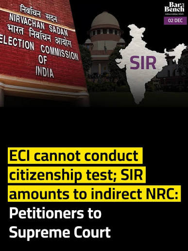 SIR के खिलाफ सुनवाई, सुप्रीम कोर्ट ने फैसला सुरक्षित रखा:याचिकाकर्ता बोले- ECI मनमानी नहीं कर सकता, चुनाव अधिकारी अदालत नहीं जो नागरिकता तय करेंगे