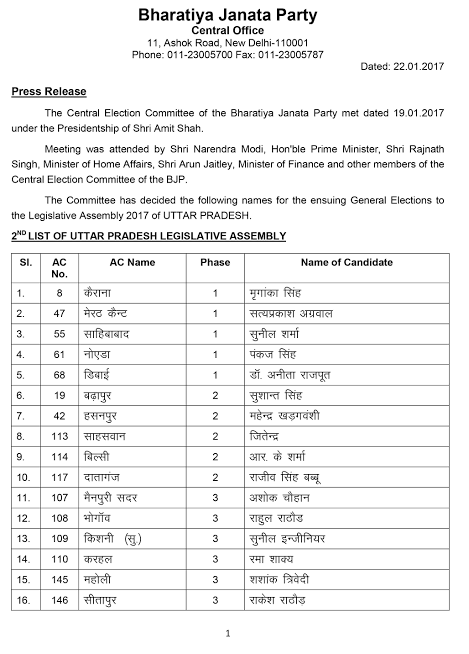 इसके अलावा, इनर मणिपुर से थौनाओजम बसंत कुमार सिंह को टिकट दिया गया है। इन्हें मिलाकर भाजपा अब तक 405 प्रत्याशियों के नाम का ऐलान कर चुकी है।