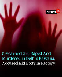 दिल्ली के बवाना इलाके में 5 साल की मासूम बच्ची की रेप के बाद हत्या कर दी गई। पुलिस ने आरोपी को पश्चिम बंगाल से गिरफ्तार कर लिया है। पुलिस ने बताया कि ये घटना 24 मार्च की है। आरोपी बच्ची को बहला-फुसलाकर अपने साथ ले गया। उसके बाद रेप के बाद हत्या करके शव को फैक्ट्री में छिपा दिया।