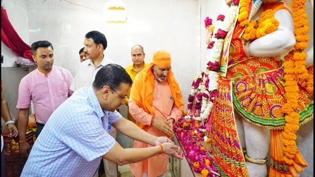दिल्ली के मुख्यमंत्री अरविंद केजरीवाल ने शनिवार को दिल्ली के कनॉट प्लेस स्थित प्राचीन हनुमान मंदिर में पत्नी सुनीता केजरीवाल के साथ पूजा की। पंजाब के मुख्यमंत्री भगवंत मान भी उनके साथ थे।
