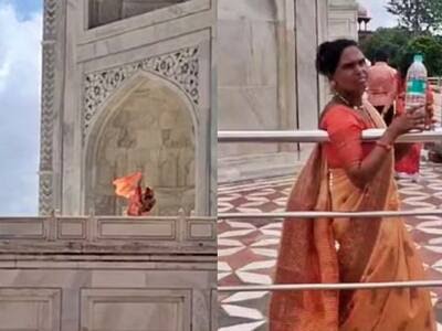 आगरा के ताजमहल में सावन के सोमवार पर महिला ने मुख्य गुंबद के ऊपर जल चढ़ाया। उसने भगवा कपड़ा भी लहराया। महिला ने दावा किया कि वह बोतल में गंगाजल लेकर गई थी।